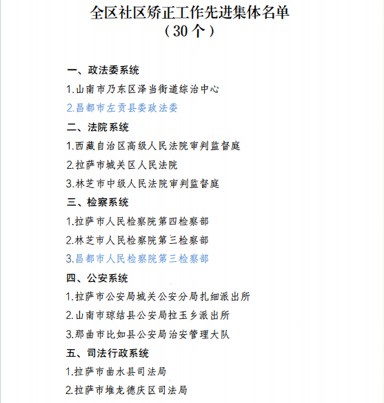 近日,西藏自治區社區矯正委員會決定,授予全區30個集體“全區社區矯正工作先進集體”榮譽稱號;授予全區70名同志“全區社區矯正工作先進個人”榮譽稱號。其中,昌都4個集體、10名個人獲得表彰。