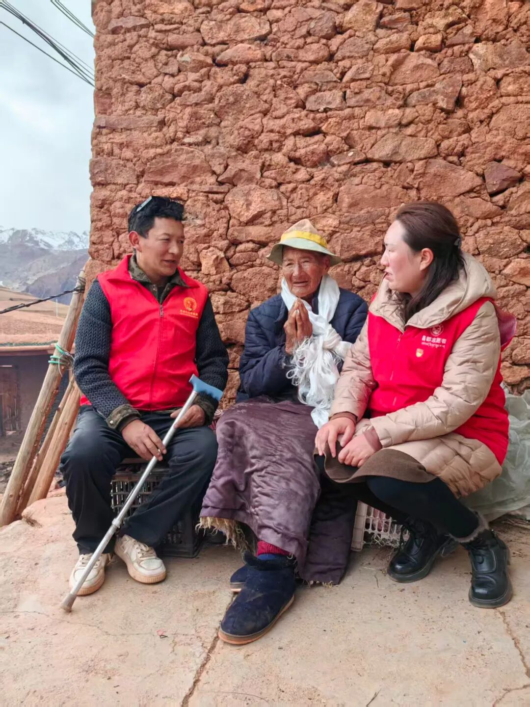 精準(zhǔn)幫扶環(huán)節(jié)溫情涌動(dòng)。黨員隊(duì)伍每到一戶均獻(xiàn)上潔白哈達(dá),與群眾促膝長談摸清民生底數(shù)與實(shí)際需求。在交流不便的村民家中,黨員通過手勢與眼神耐心詢問照料情況,對方以真摯點(diǎn)頭表達(dá)感激;面對行動(dòng)不便的村民,大家細(xì)致了解康復(fù)進(jìn)展并予以鼓勵(lì),簡單的“感謝黨”三字承載著深厚情感。走進(jìn)百歲老人家中,黨員關(guān)切詢問飲食起居并叮囑家屬悉心照料,老人慈祥的笑容成為對黨和政府信任的生動(dòng)注腳。慰問中,糌粑、大茶、蕎面掛面、食用油等生活物資陸續(xù)送到村民手中,推動(dòng)“我為群眾辦實(shí)事”實(shí)踐活動(dòng)向縱深開展。