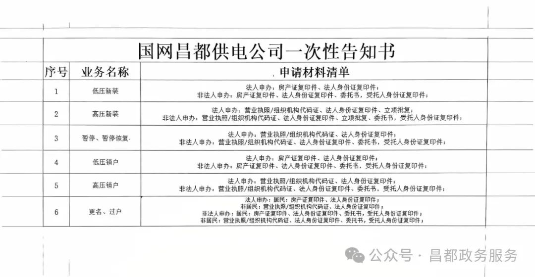 國網電力有限公司昌都供電公司窗口 ——市政務服務中心一次性告知單