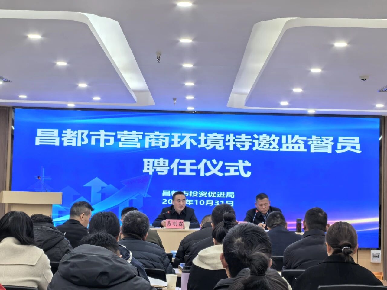 為深入貫徹落實黨中央及西藏自治區關于優化營商環境的決策部署,持續提升治理效能,2025年10月31日,昌都市在昌都會議中心二樓黨員綜合活動中心會議室舉行營商環境特邀監督員聘任儀式,市投資促進局黨組副書記、副局長田野主持會議,黨組書記、副局長易剛露出席并講話,37名特邀監督員代表及市投資促進工作領導小組成員單位有關科室負責同志共50余人參會。