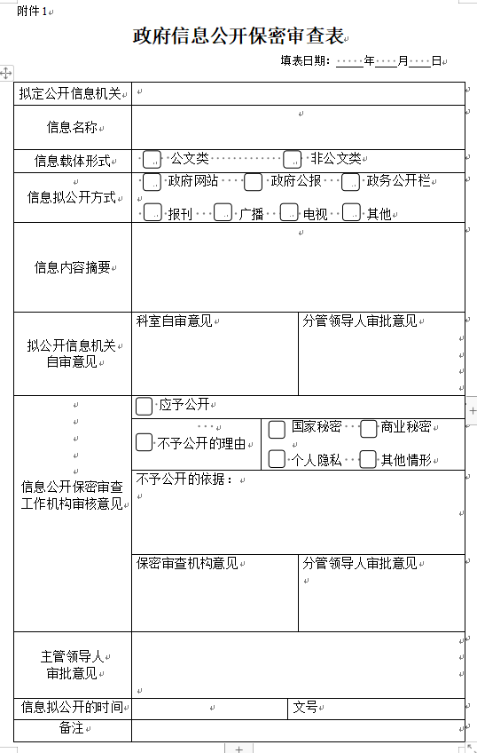 1.建立健全本行政機關政府信息公開保密審查工作制度。