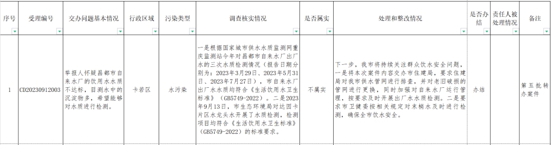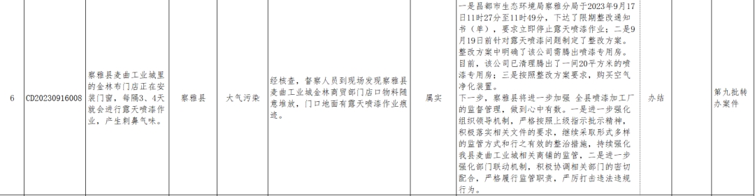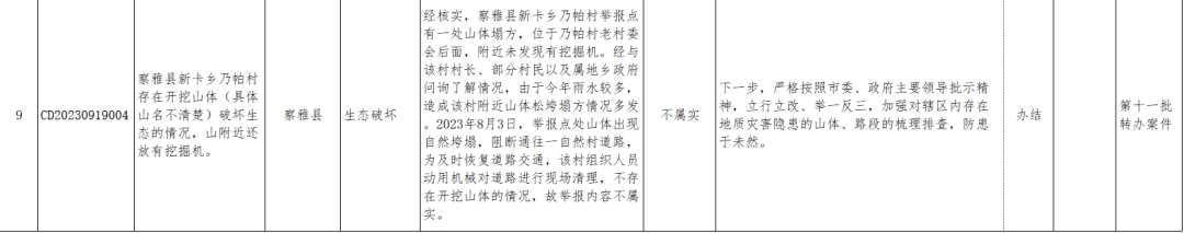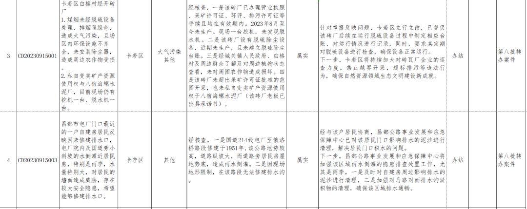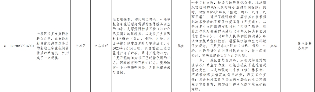 截至2023年9月21日,西藏自治區生態環境保護督察第三督察組共向我市轉辦群眾信訪舉報案件12批次64件(來信2件),目前已辦結50件(不屬實17件),階段性辦結1件,剩余未辦結案件已明確責任單位,正按相關程序積極推進辦理。已公示42件,現將今日辦結9件信訪舉報案件情況進行公示。