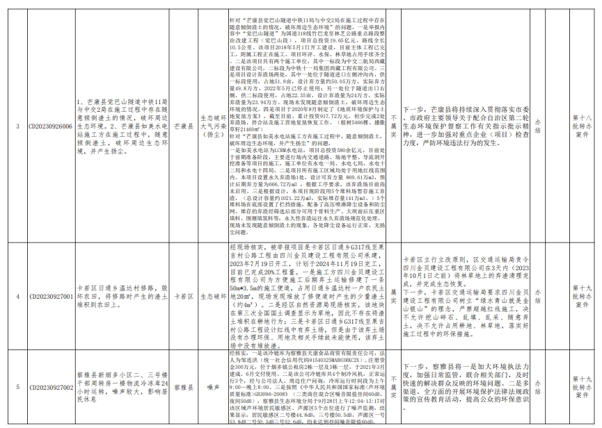 截至2023年9月29日,西藏自治區生態環境保護督察第三督察組共向我市轉辦群眾信訪舉報案件19批次88件(來信4件),目前已辦結85件(不屬實37件),階段性辦結2件,已公示82件,現將今日辦結5件信訪舉報案件情況進行公示。