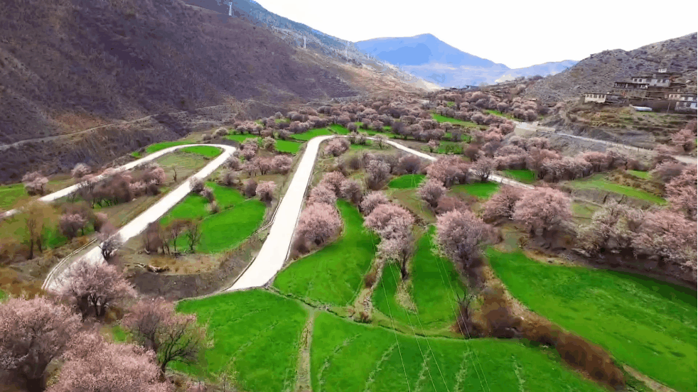 每年4月,是洛隆縣俄西鄉靜待萬畝野生杏花盛開的季節,當漫山的杏花盛放,可以說是這里最美的光景,而涵養這片萬畝杏花田的,正是達鄧村的薩依曲。