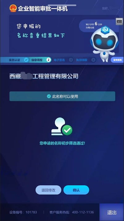 5.點擊下一步,根據(jù)企業(yè)名稱查重,根據(jù)查重結(jié)果進入下一步。如圖10所示: