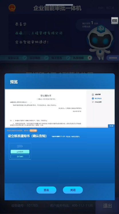 2.*打印過程中需要第二次簽名,告知用戶設(shè)立核準通知書。如圖24所示: