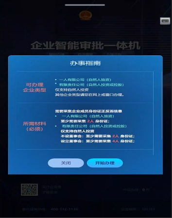 *企業(yè)智能審批僅支持辦理一人有限公司(自然人獨資)或有限責任公司(自然人投資或控股)兩種企業(yè)類型;分支機構(gòu)不能智能審批。