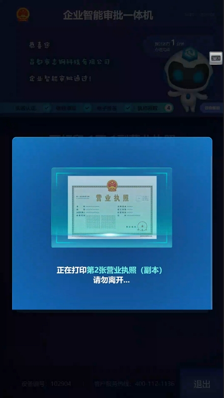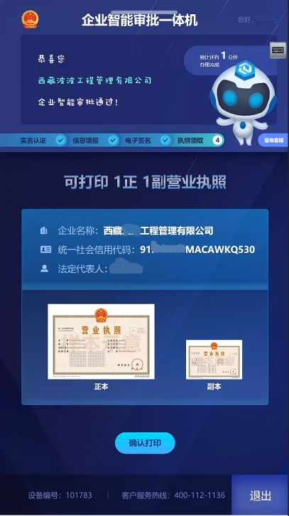 1.智能審批通過后,點擊確認打印,一鍵確認打印營業(yè)執(zhí)照正副本。如圖23所示:
