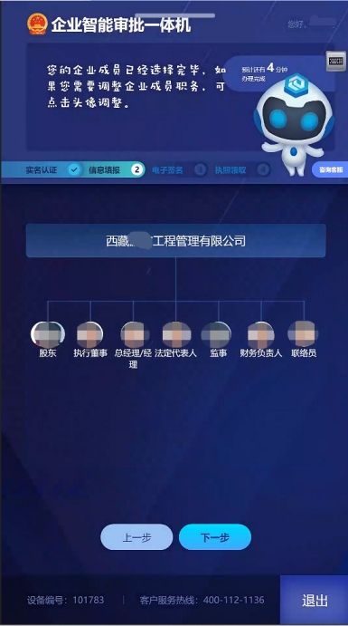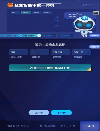 3.在添加完企業(yè)成員的信息后,點擊“完成識別”,進入企業(yè)名稱填寫頁面。如圖8所示:
