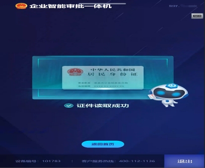 2.根據(jù)提示在插卡口放入身份證原件,進行身份證信息讀取。若出現(xiàn)吞卡情況,請長按插入口旁邊的強制退卡按鈕。
