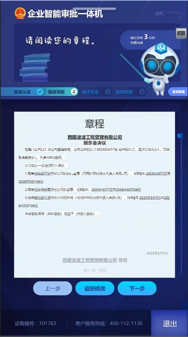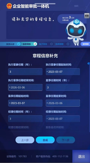 10.填寫企業(yè)章程補充信息,系統(tǒng)自動合成章程。如圖17,如圖18所示: