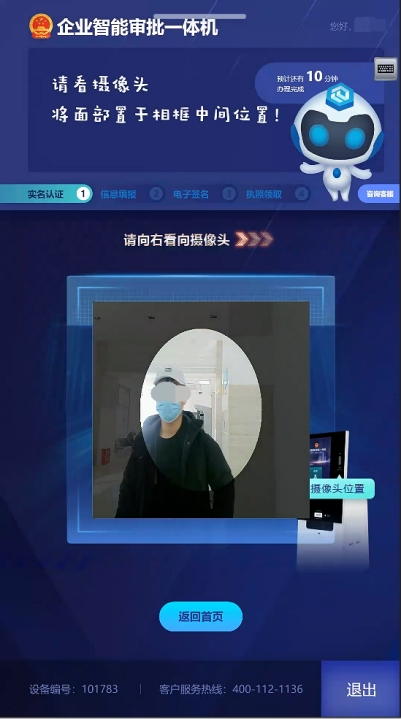 3.證件讀取后,本人對準攝像頭,將面部置于中間位置進行人臉識別,驗證成功后進入信息填報頁面。如圖5所示: