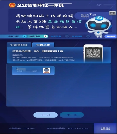2. 根據(jù)頁面提示,在插卡口放入企業(yè)的其他成員身份證或其他成員通過掃碼的形式,進行身份信息錄入。如圖7所示: