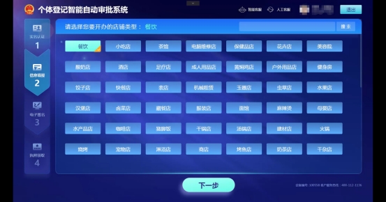 人臉識別成功后進入事項辦理頁面,申請人根據自己需要開辦的個體工商戶類型進行選擇并點擊相應的模塊。如圖5所示: