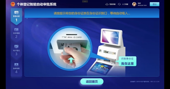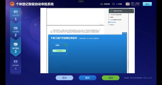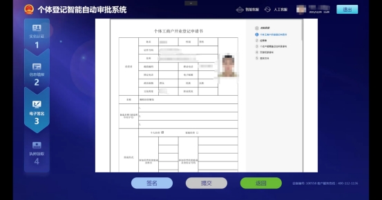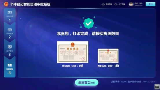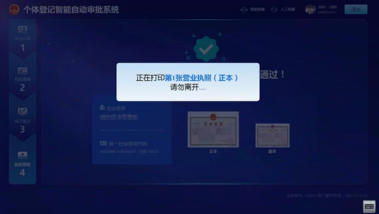 簽字完畢之后點擊“提交”,系統自動進行審核。審核完成以后,設備出現營業執照打印界面。如圖15、圖16所示: