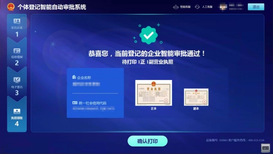 當提示所登記的智能審批通過后將準備打印執照,點擊“確認打印”出現審核通知書簽名,如圖17所示:
