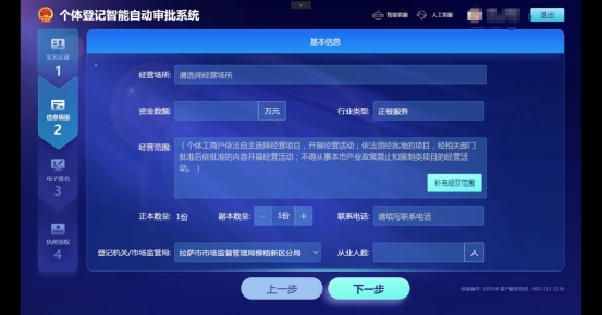 進入信息填報頁面,根據實際情況填寫以下空框里的信息,沒有填寫完畢即無法進入下一步,填寫完畢之后點擊“下一步”。如圖10所示: