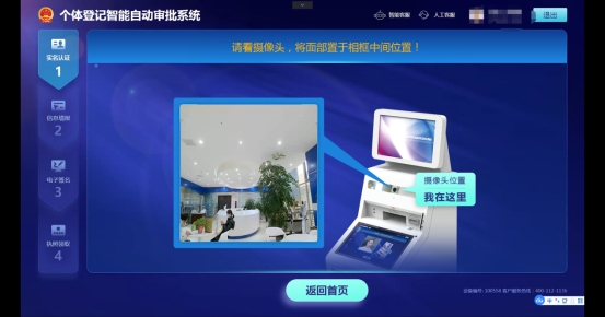 身份證讀取成功之后,請拿走本人身份證。系統需對申請人進行實名認證,請申請人正對攝像頭掃描窗口。如圖4所示: