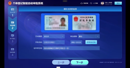 進入個人信息填報頁面,根據自身實際情況填寫以下信息,填寫時請核對個體信息是否正確,填寫完畢進入“下一步”。如圖11所示: